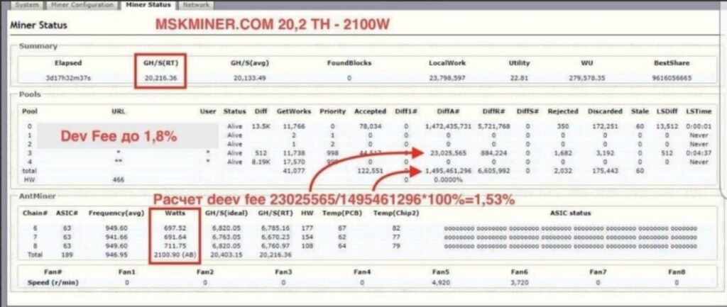 прошитые п*сами на более высокий хэшрейт, к примеру 9500, и продаваемые соответственно, по ценам и под видом более старших моделей. Отличить такие подделки можно по наклейкам, отличающимися от заводских другими шрифтами, а также по увеличенному потреблению электроэнергии и увеличенным температурам плат и чипов вследствие того, что майнер фактически работает в разгоне.