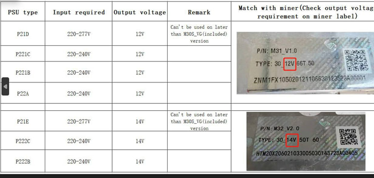 Совместимость блоков питания Whatsminer